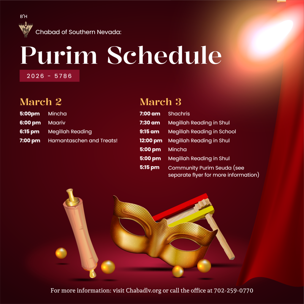 The festival of Purim commemorates the Divinely orchestrated salvation of the Jewish people in the ancient Persian Empire from Haman’s plot “to destroy, kill and annihilate all the Jews, young and old, infants and women, in a single day.” It is celebrated with Megillah readings, gifts of food, charity, feasting, and merriment. Read more about Purim